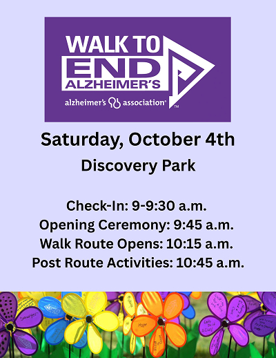 Saturday, October 4th Discovery Park Check-In: 9-9:30 a.m. Opening Ceremony: 9:45 a.m.